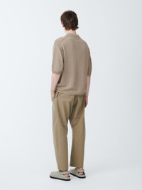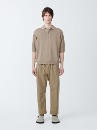 An oversized knit polo, cut from a loose-knit, airy 7-gauge lightweight cotton yarn. - Oversized fit - 3 button placket - Dropped shoulder construction - Ribbed neck, hem and cuffs DETAILS & CARE 100% Paper Delicate Dry Clean Only