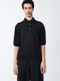 An oversized knit polo, cut from a loose-knit, airy 7-gauge lightweight cotton yarn. - Oversized fit - 3 button placket - Dropped shoulder construction - Ribbed neck, hem and cuffs DETAILS & CARE 100% Paper Delicate Dry Clean Only