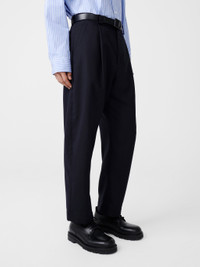 The Tuck pants have a cropped leg with a gently rounded shape. A single pleat front and mid-rise nod to traditional tailoring. They are cut from our springy, airy tropical wool fabric. DETAILS - Woven at renowned British mill, Alfred Brown - Twin welt pockets at back - Belt loops - Cropped, relaxed shape - Wear it with the matching Sphere JacketLi is 6'1" / 185 cms and wears a Medium CARE 100% Wool Dry Clean Only Made in Portugal