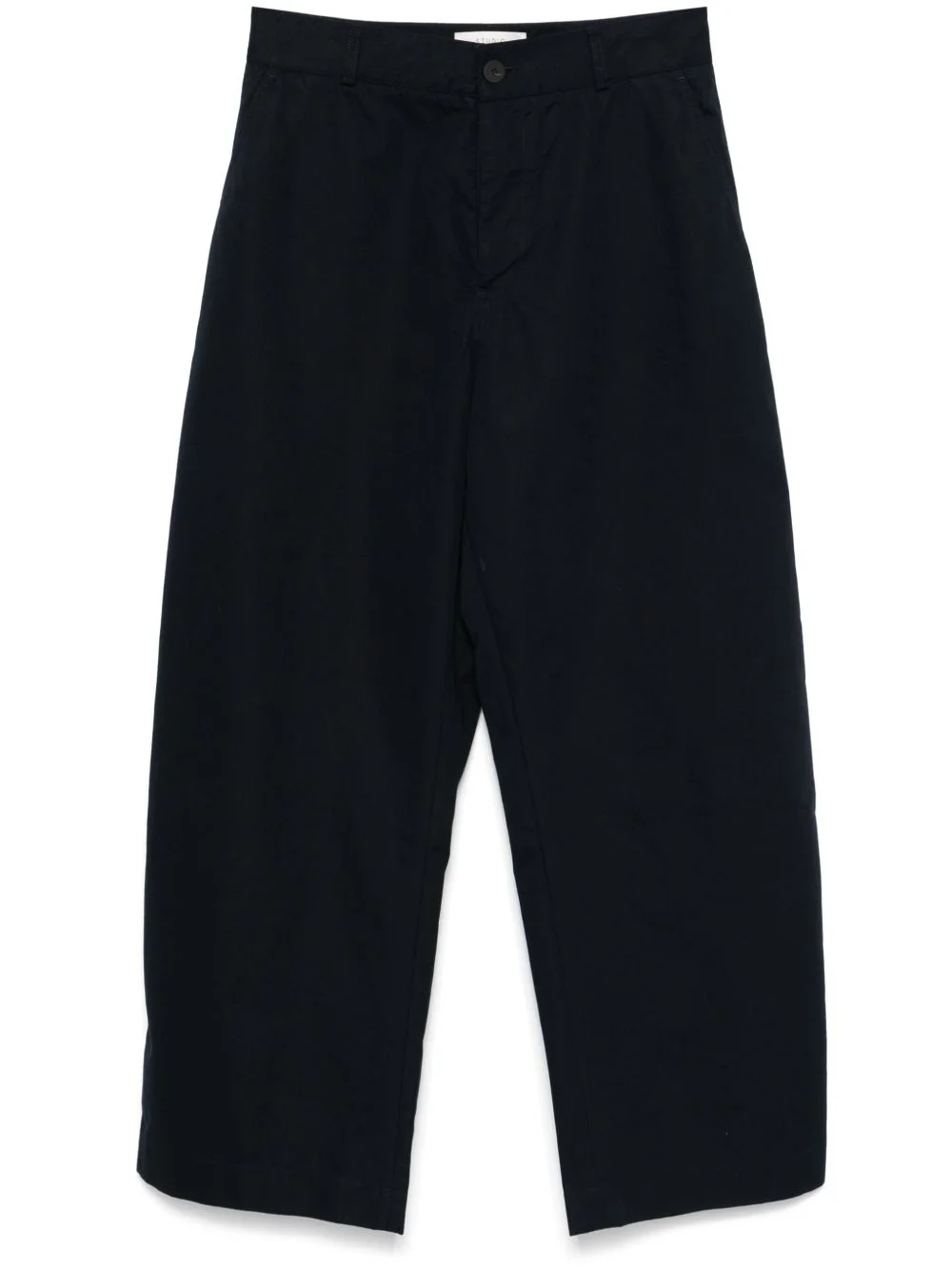 twill-weave chinos Highlights - Navy blue - Concealed fly and button fastening - Two diagonal pockets to the sides - Two rear welt pockets Imported Composition Cotton 68%, Polyamide 32% SIZE & FIT Model measurements Height 6 ft 1 in(1.85 m) Bust/Chest 35.82 in(91 cm) Hips 37.79 in(96 cm) Waist 29.13 in(74 cm) FittingInformation Designed with a wide leg, offering a loose and roomy fit Made from a midweight non-stretch fabric