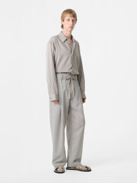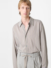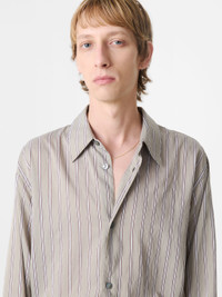 Cut from a crisp poplin with an antique stripe, this season's iteration of the View Shirt is a playful revision of classic men’s shirt styles: tailored, but without the stiffness of a formal shirt. It has a generous, slightly boxy fit which stops short of being truly oversized. Its collar and cuffs have a soft construction, giving them a casual feel. DETAILS - Loose fit - Point collar - Embroidered ‘SN’ monogram at waist - Pearlescent button placket - Contrast topstitching - Flat felled seams - Curved hemJosefp is 6'2" / 187 cms and wears a Medium CARE 81% Lyocell 19% Polyamide Hand Wash | Delicate Dry Clean Made in Portugal