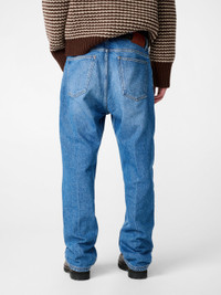 Taking cues from Americana workwear, Studio Nicholson and Aaron Levine collaborate to create the Windslow jeans. They’re cut from durable 14oz regen denim that’s washed and faded for a worn-in, vintage feel and shaped to a classic five-pocket profile with room through the seat and a slight taper in the leg – subtle nods to Western detailing. The jeans are finished with pressed creases for a smart impression. DETAILS - Button fly - Classic five pockets - Front and back pressed creases - Rear leather logo patchFinn is 6' 1½''/ 186.5 cms and wears a Medium CARE 100% Cotton Wash at 30°C | Warm Iron