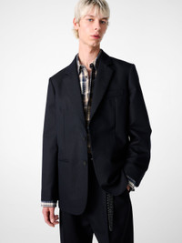 Studio Nicholson’s modern tailoring is captured in this Burlington jacket, crafted as part of a capsule collection created in collaboration with Aaron Levine. It’s cut from our herringbone wool: a Scottish-milled fabric that recalls heritage tailoring cloth. A contemporary take on the classic two-button sports silhouette dating back to the 1920s, Burlington is shaped with notch lapels, back vents, and buttoned cuffs. DETAILS - Notch lapels - Two-button front - Buttoned cuffs - Back vents - Wear it with the matching Selby PantFinn is 6' 1½''/ 186.5 cms and wears a Medium CARE Main Fabric: 100% Wool Lining: 51% Viscose 49% Cotton Dry Clean Only Made in Portugal