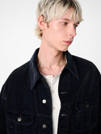 Part of Studio Nicholson’s collaboration with Aaron Levine, Derby is cut from Italian-milled corduroy that’s garment-dyed to create a softer, lived-in feel and captures SN’s ‘fabric first’ philosophy. The jacket deviates from the signature slim cut of classic trucker styles with a relaxed, boxy shape that gives a distinctly modern feel. Derby is finished with a smart spread collar, contrast top-stitching and adjustable waist tabs. DETAILS - Spread collar - Buttoned-flap chest pockets - Buttoned cuffs - Button waist tabs - Wear it with the matching Woodstock PantFinn is 6' 1½''/ 186.5 cms and wears a Medium CARE 100% Cotton Wash at 30°C | Cool Iron