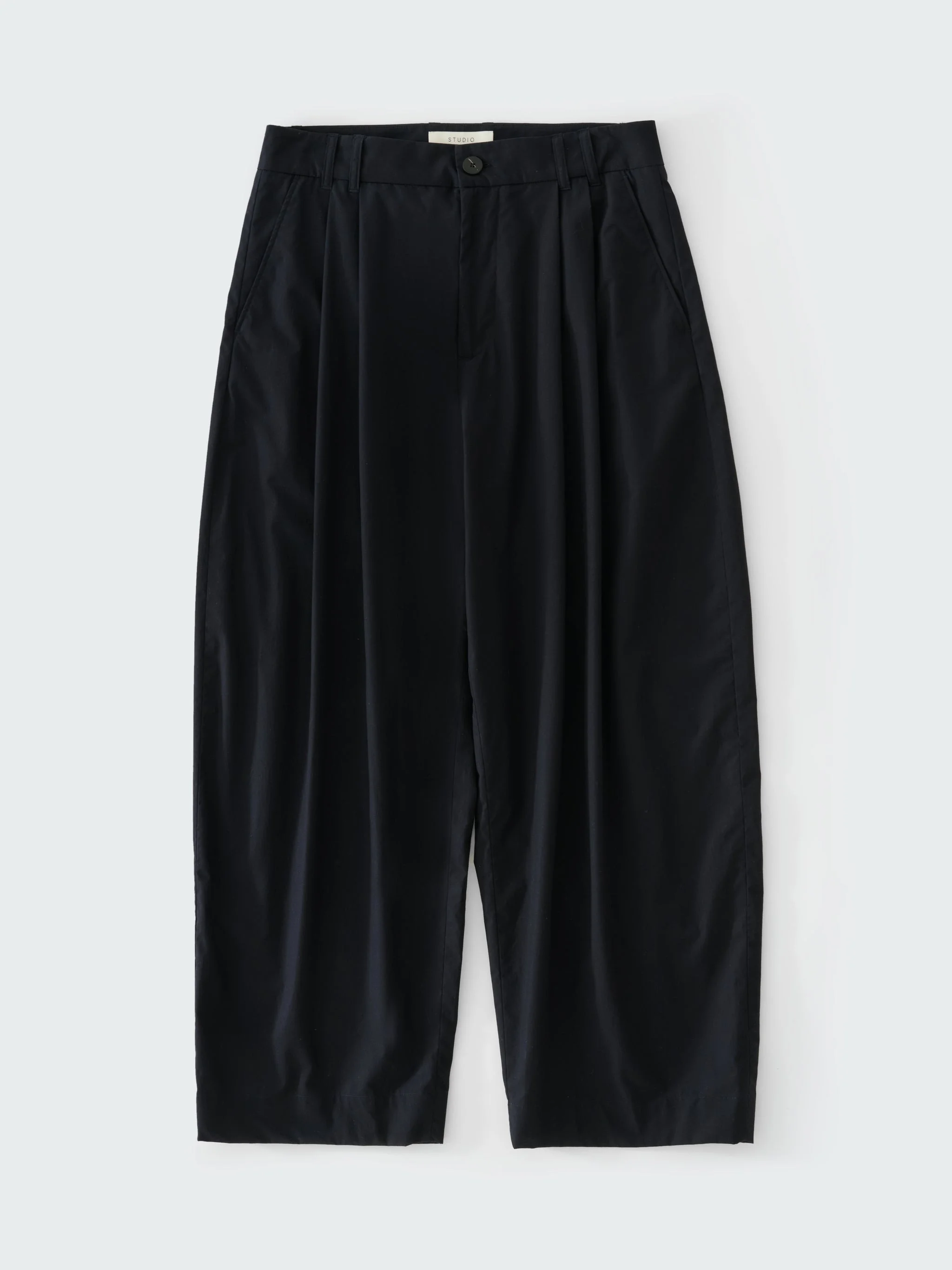 Double-pleated, with a full cut and plenty of drape, the Yale pants have a certain laid-back sophistication. This version of our mid-waisted volume-leg staple is constructed from our ‘noisy cotton’ fabric: an Italian-milled poplin with a light PU coating that creates a smooth matte finish and a pleasingly crisp hand feel. DETAILS - Chunky belt loops - Double front pleats - Two front slant pockets - One rear flap pocket - Relaxed cut with volume leg - Cropped at the ankleDarron is 6'1" / 185 cms and wears a size Medium CARE 100% Cotton Delicate Wash at 30°C | Dry Clean Made in Portugal