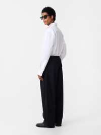 Double-pleated, with a full cut and plenty of drape, the Yale pants have a certain laid-back sophistication. This version of our mid-waisted volume-leg staple is constructed from our ‘noisy cotton’ fabric: an Italian-milled poplin with a light PU coating that creates a smooth matte finish and a pleasingly crisp hand feel. DETAILS - Chunky belt loops - Double front pleats - Two front slant pockets - One rear flap pocket - Relaxed cut with volume leg - Cropped at the ankleDarron is 6'1" / 185 cms and wears a size Medium CARE 100% Cotton Delicate Wash at 30°C | Dry Clean Made in Portugal