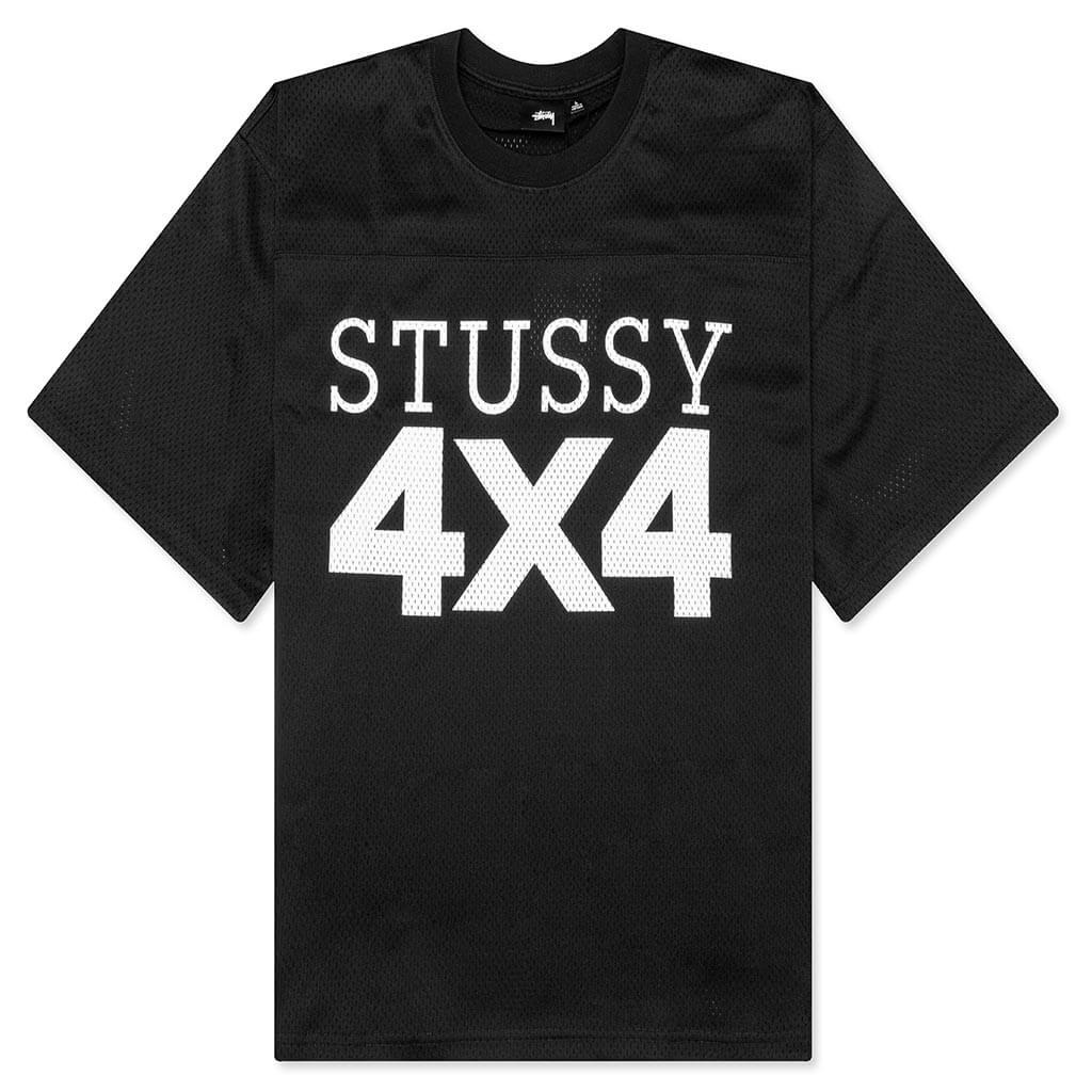 The Stussy 4x4 Mesh Football Jersey makes a statement in any apparel collection. Composed of polyester, the jersey features a boxy fit along with printed logo branding at the chest. Ribbed detailing can be found at the neckline, completing the design. - 100% polyester - Boxy fit - Ribbed neckline - Printed logo branding - Style No: 1140329-BLAC