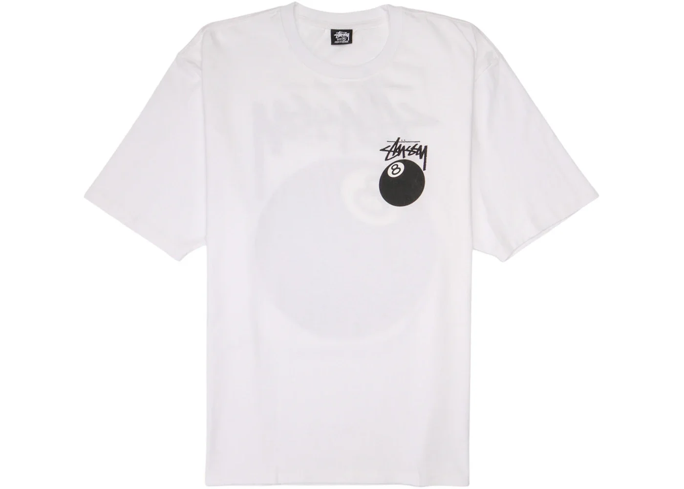 The Stussy 8 Ball Tee (SS22), featuring a pure white fine jersey knit, blends comfort and style to make for a timeless casual wear. The Stussy 8 Ball T-shirt is made using 100% crisp white cotton. Above its fitting full shoulder length is a ribbed crew neck with a cuddly front neck drop that reinforces the wearing pleasure. The comfortable arm holes on either side of the chest make this tee practical for every day wear. From each arm hole stems a relaxing short sleeve that ends in a firm open to ensure durability. The cotton fabric that joins the t-shirt’s neckline and bottom maintains breathability. What do our experts think the standout feature of the Stussy 8 Ball Tee (SS22) is? The black magic eight-ball branding on the front and back adorns this white tee. While subtle on the front, the imprint takes much of the back. Above the magic eight ball is a bold "Stussy" graphic, reinforcing a vibrant feel. The Stussy 8 Ball Tee (SS22) retailed for $40 when it was released in August 2022. - Season SS22 - Color White - Style 1904760-WHT/1905103-WHT - Retail Price 40 - Featured false