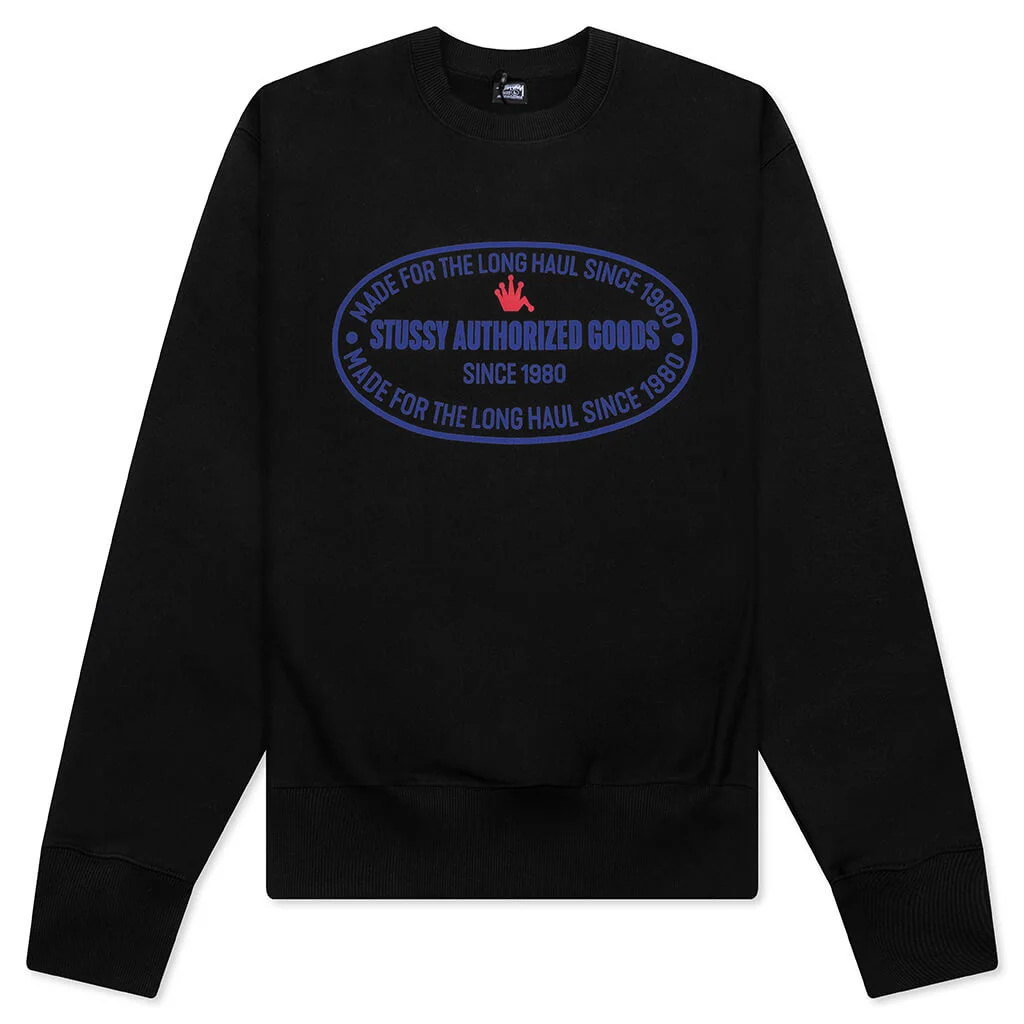 Stussy presents a new staple crewneck with the Authorized Crew. Made from cotton, this heavyweight crewneck is cut to have a relaxed fit. Classic details include ribbed trims at the neckline, cuffs, and hem. The look is complete with screen-printed graphics across the front. - 100% Cotton - Relaxed fit - Heavyweight - Crew neckline - Ribbed trims - Screen-printed graphics - Style No: 1915122-BLAC