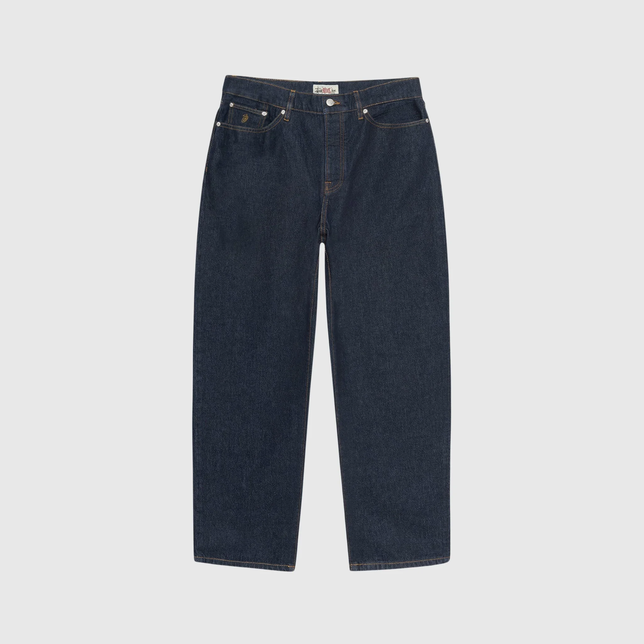 - 116599T-RIIN - Rinsed Indigo - 100% Cotton - 14.5 oz Cotton denim - Button closure - Five-pocket styling - Embroidery at the coin pocket - Suede logo patch at the back - Oversized fit