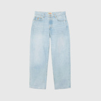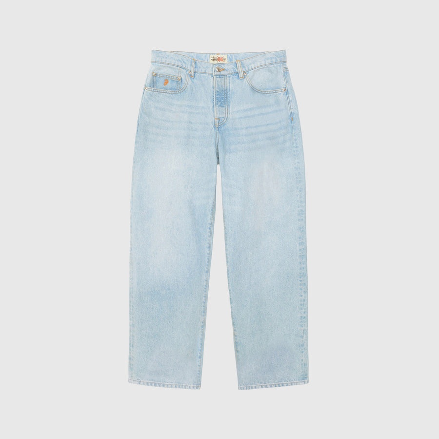 - 116599-LIWA - Light Wash - 100% Cotton - 14.5 oz Cotton denim - Button closure - Five-pocket styling - Swirly "S" embroidered on coin pocket - Suede logo patch at the back - Oversized fit