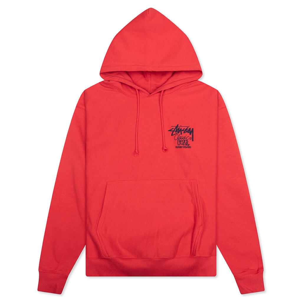 Stussy's Classic Gear Hoodie is composed of a heavyweight 430 GSM cotton blend and has an oversized, relaxed fit. The look is highlighted by the screen-printed graphics on the front and back. Some technical details to round out the look are the attached hood with an adjustable drawstring, the kangaroo pocket, and the ribbed trims. - 75% Cotton/25% Polyester - 430 GSM fabric - Relaxed fit - Attached hood - Rounded drawcord - Kangaroo pocket - Screen-printed graphics - Ribbed trims - Style No: 1925084-CAYA