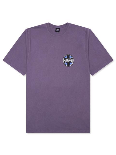 The Cross Dot Pigment Dyed Tee by Stussy is a standout piece that combines comfort with bold design. Crafted from midweight 220gsm cotton jersey, this tee offers a relaxed fit. Featuring screen-printed graphics on the left chest and across the back, showcasing Stussy's distinctive style. The pigment dyeing process gives each shirt a unique, purple hue, ensuring no two pieces are exactly alike. - 100% Cotton - Midweight 220gsm - Relaxed fit - Ribbed crewneck - Screen-printed graphics - Individually dyed, one-of-a-kind result - Style No: 1905112-GRPE