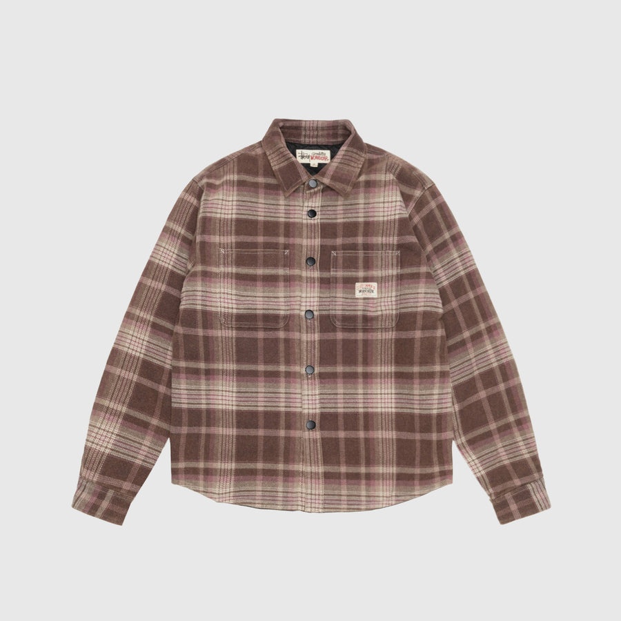 - 1110339-BROW - Brown - 100% Cotton - Lining: 100% Polyester - Heavy washed cotton - Front snap button closure - Two front chest pocket - Stussy workgear label at the chest - Adjustable snap button cuffs - Rounded hem - Relaxed fit