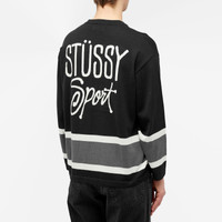 Stussy has come a long way since its humble beginnings selling awesome surfboards and a few graphic tees to friends, growing to become a global cult phenomenon. It's all thanks to creative apparel like this hockey sweater. In keeping with the label’s sporting roots, it’s cut oversized with bold horizontal dyed stripes - synonymous with classic hockey gear - and features a large custom logo across the back. - 100% Mercerized Cotton - V Neck - Yarn Dyed Stripes - Jacquard Branding