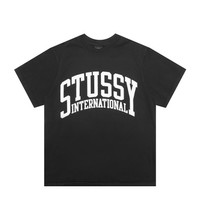 Stussy International Pigment Dyed Tee Black 1905003 - Stussy Midweight Short-sleeve T-shirt - Pigment Dyed Application - Ribbed Collar - Screen-printed Stussy International Crackle Logo on the Front Chest - Oversized Fit - 100% Cotton