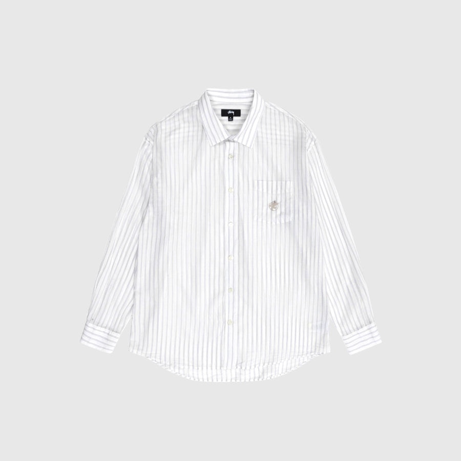- 1110289WHIT - White - 100% Cotton - Front button closure - Front chest pocket - Adjustable button cuffs - Stüssy surfman logo embroidery on chest pocket - Curved hem - Boxy fit