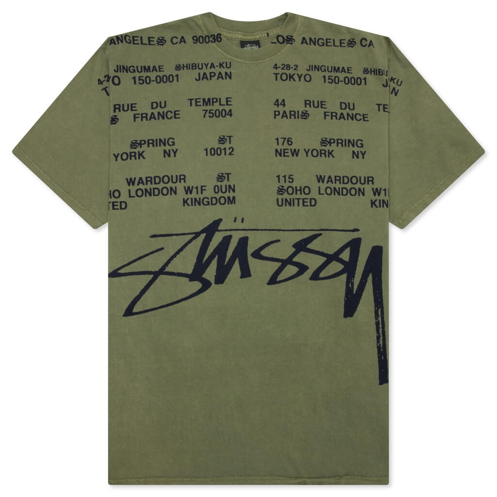 Stussy introduces the Locations Pigment Dyed Tee in its latest collection. Composed of cotton, the design has been individually dyed for a one-of-a-kind result. A ribbed neckline is seen, while signature Stussy screen-printed branding finishes the design. - 100% Cotton - Pigment-dyed - Ribbed neckline - Screen-printed branding - Style No: 1905004-OLIV