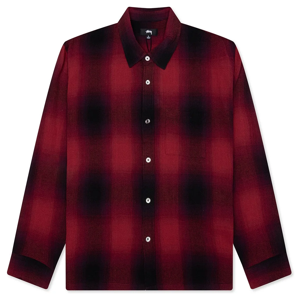 The Loose Weave Plaid Shirt by Stussy is crafted from loose weave cotton for a naturally light and airy feel. Designed with a relaxed fit, it features a classic collar, mother of pearl button closure, and button-pleated cuffs. Thoughtful details like the chest patch pocket, back yoke, and straight hem with 1 1/2" side-seam slits add dimension and movement. Signature Stussy labels complete the look. - 100% Cotton - Loose weave - Classic collar - Mother of pearl button closure - Chest patch pocket - Back yoke - Button-pleated cuffs - Straight hem - 1 1/2" side-seam slits - Stussy stock flag label tab - Style No: 1110360-REDD