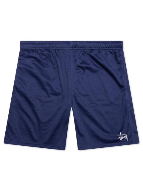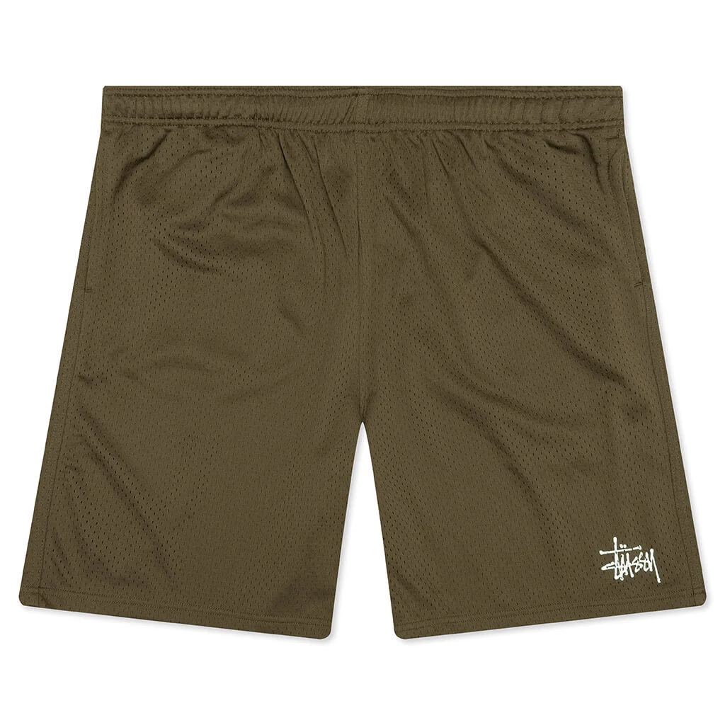 The Stussy Mesh Basic Shorts are built for comfort and everyday wear. Made from 100% polyester with a double layer mesh construction, they offer a lightweight feel. Functional details include an elastic waistband with internal drawcords, side-seam pockets, and a rear welt pocket. A subtle Stussy logo is printed on the front leg for easy recognition. - 100% Polyester - Double layer mesh - Elastic waistband - Internal drawcord - Side-seam pockets - Rear welt pocket - Printed Stussy logo - Style No: 112335-OLIV