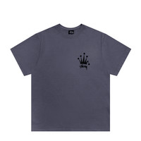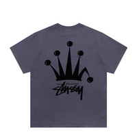 Stussy Regal Crown Pigment Dyed Tee Indigo 1905002 - Stussy Short Sleeve T-shirt - Pigment Dyed Application - Ribbed Collar - Screen-printed Graphic on the Left Chest and Back - Oversized Fit - 100% Cotton