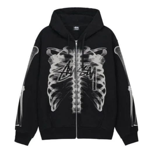 Stussy Rib Cage Zip Hoodie 'Black White' 1974948