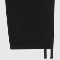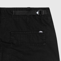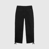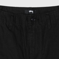 - 116586P-BLAC - Black - 100% Cotton - Stonewash - Button closure with zip fly - Slanted hand pockets - Buckle adjusters - Four cargo pockets with flap and snap closure - Two rear pockets withflap andsnap closure - Drawstring at cuffs - Stüssy original stock flag label - Relaxed fit