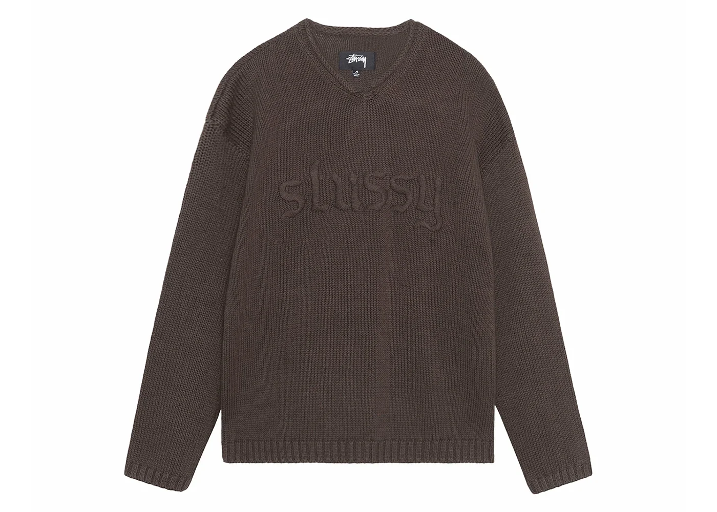 Stussy Embroidered V-Neck Logo Sweater Brown