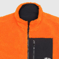 - 118528-TANG - Tangerine - 100% Polyester - Reverse: 100% Nylon - Front zip closure - Two front Taslan welted pockets - Taslan zip chest pocket with Stüssy logo embroidery - Stüssy big stock flag label at side seam - Lycra-bound armholes and hem - Mock neck collar