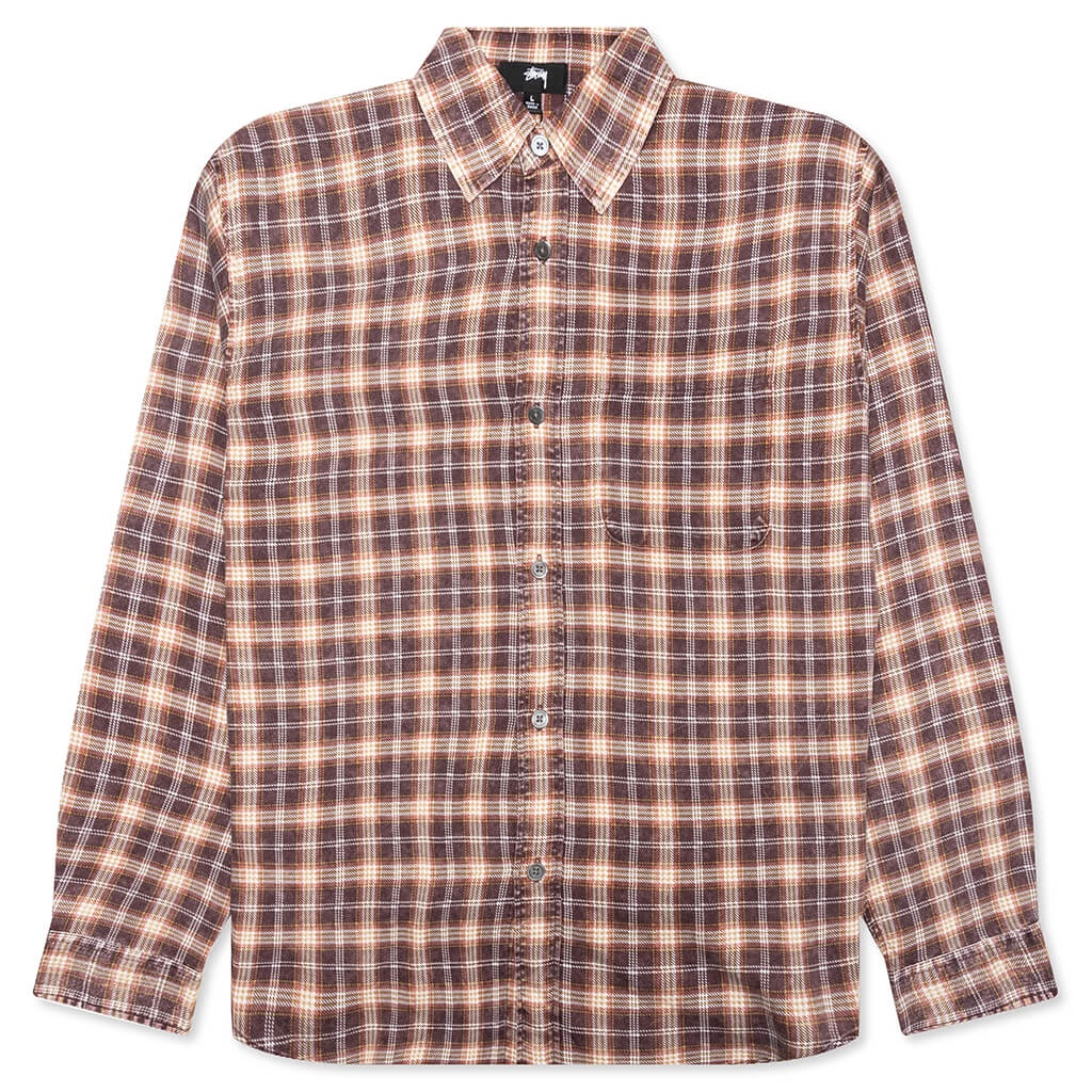 Stussy's Matthew Plaid Shirt in Brick features a collared neckline and pearl button closure for a touch of elegance. The buttoned cuffs and back yoke add to its classic design, while the curved hem and relaxed fit ensure comfortable fit. Collared neckline Pearl button closure Buttoned cuffs Curved hem - Collared neckline - Pearl button closure - Buttoned cuffs - Back yoke - Curved hem - Relaxed fit - Style No: 1110328-BRIC