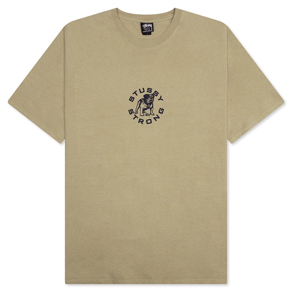 Stussy's Strong Mac Pigmented Dyed Tee is made from 220 GSM cotton and has been pigment-dyed, creating a unique look. Designed to run large, this tee offers a relaxed fit that is perfect for casual wear. It showcases screen-printed graphics on the front to complete the look. Style No: 1905086-ELMM - 100% Cotton - 220 GSM fabric - Pigment-dyed - Crew neckline - Ribbed collar - Relaxed fit - Screen printed graphics - Style No: 1905086-ELMM