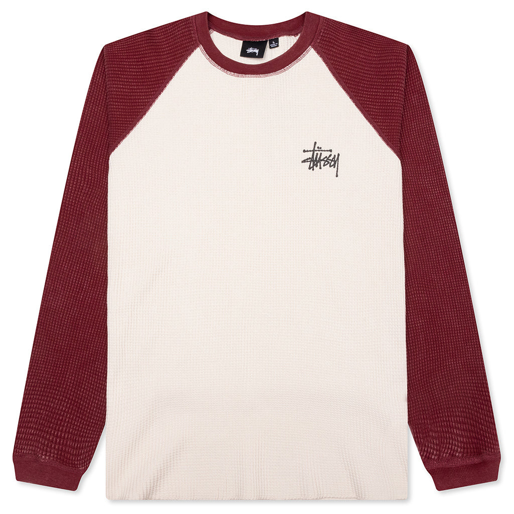 Made from 100% cotton with a textured waffle-knit construction, the Raglan Thermal 2 Tone delivers a perfect mix of comfort and breathability. The stonewashed pigment-dye finish gives it a vintage edge, while the contrast two-tone design adds a bold, street-ready aesthetic. Featuring raglan sleeves, ribbed cuffs, and flatlock seams, the thermal is complete with printed Stussy branding. - 100% Cotton - Waffle knit texture - Relaxed fit - Stonewashed pigment-dyed - Raglan sleeves - Ribbed crewneck & cuffs - Flatlock-stitched seams - Straight hem - Printed graphics from water-based ink - Style No: 1140362-OFFW
