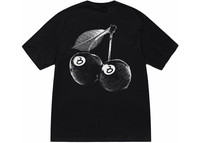 The Stussy Cherries Tee Black is a short sleeve black tee-shirt from California skate/surf brand Stussy that has a cherry graphic featuring eight balls as its main motif. The short-sleeved Black Stussy Cherries Tee debuted as part of Stussy’s 2024 spring/summer release. It has a straight waist hem and straight hemmed short sleeves. On the front upper left chest is a screen printed STUSSY logo in white, while a STUSSY neck tag is at the nape of the round, ribbed collar. The back has a screen print in white of a pair of cherries, and there is an eight juxtaposed on top of each cherry, to make them look like floating magic eight balls or eight balls from a billiards game. The main highlight of this tee has to be the large cherry screen print graphic in white on the back. It creates an edgy aesthetic thanks to its dominating position. The Stussy Cherries Tee Black was released on June 14, 2024, as part of the spring/summer 2024 collection. - Season SS24 - Color Black - Release Date 2024-06-14 - Style 1905066-BLAC - Featured false - Requester Kelsey K - Uploaded By LL