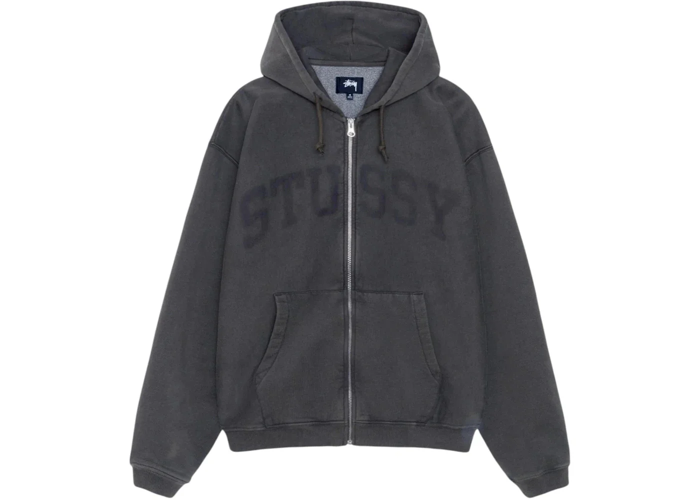 Stussy Zip Faded Graphic Hoodie Washed Black