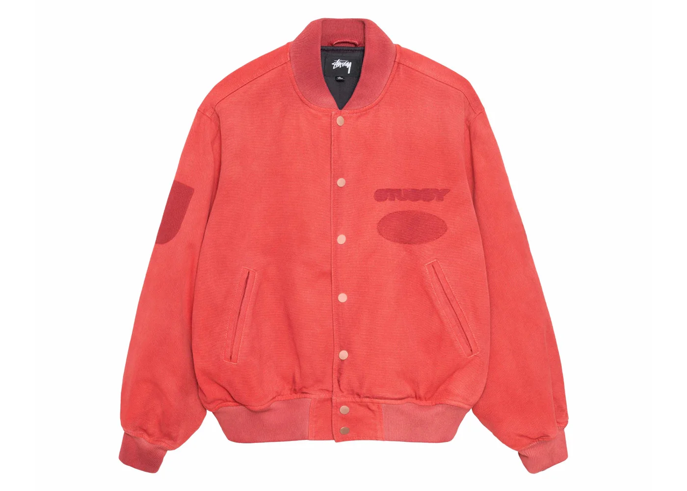 Stussy Ghost Logo Canvas Varsity Jacket Red