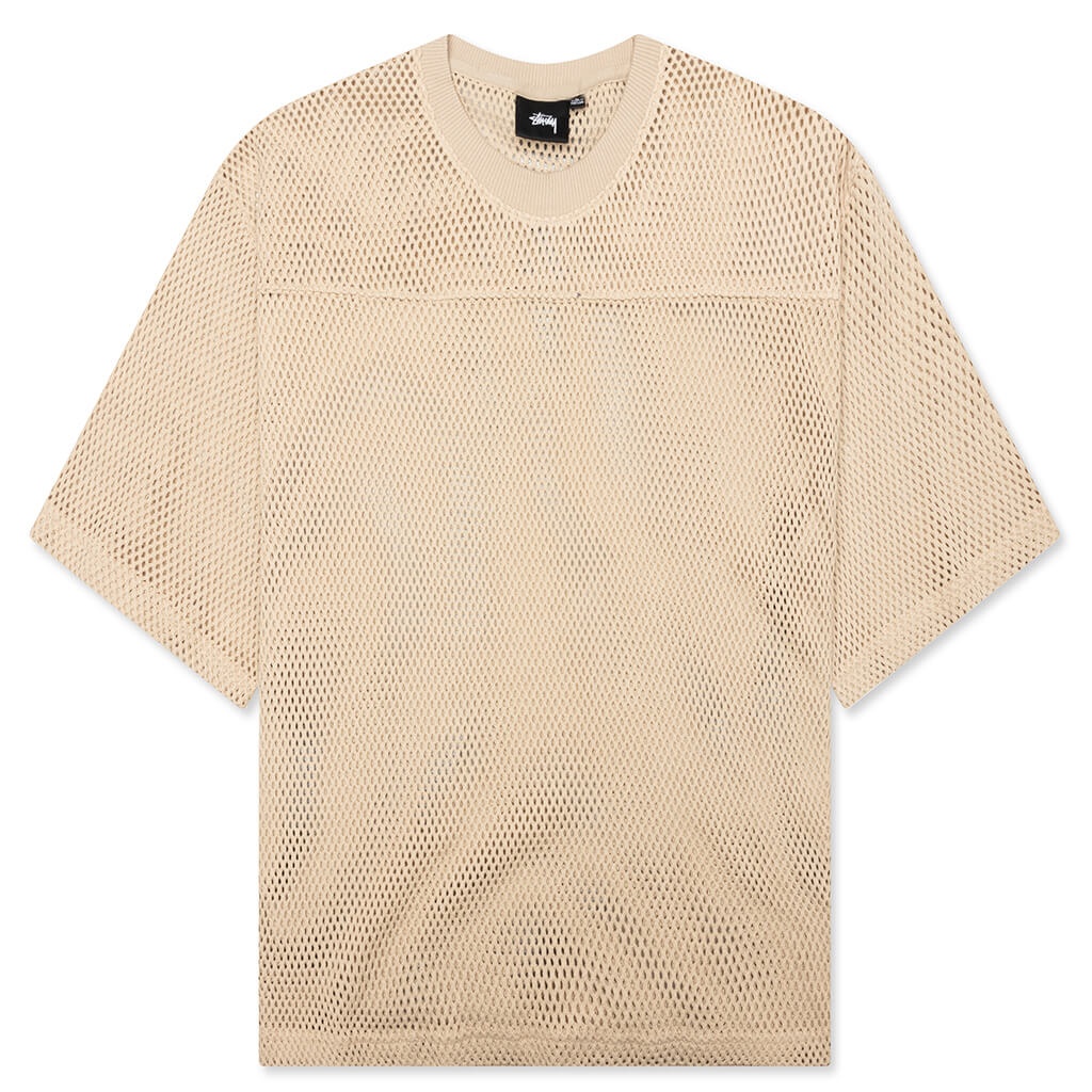 The Team Cotton Mesh in a Natural hue from Stussy is made from cotton, this short-sleeve top features a ribbed neckline for added comfort. Its boxy fit and slightly cropped design offer a contemporary look that's perfect for layering or wearing on its own. The Team Cotton Mesh in a Natural hue from Stussy is made from cotton, this short-sleeve top features a ribbed neckline for added comfort. Its boxy fit and slightly cropped design offer a contemporary look that's perfect for layering or wearing on its own. 100% Cotton Style No: 1140344-NATL - 100% Cotton - Shortsleeve - Ribbed neckline - Boxy fit - Slightly cropped - Style No: 1140344-NATL