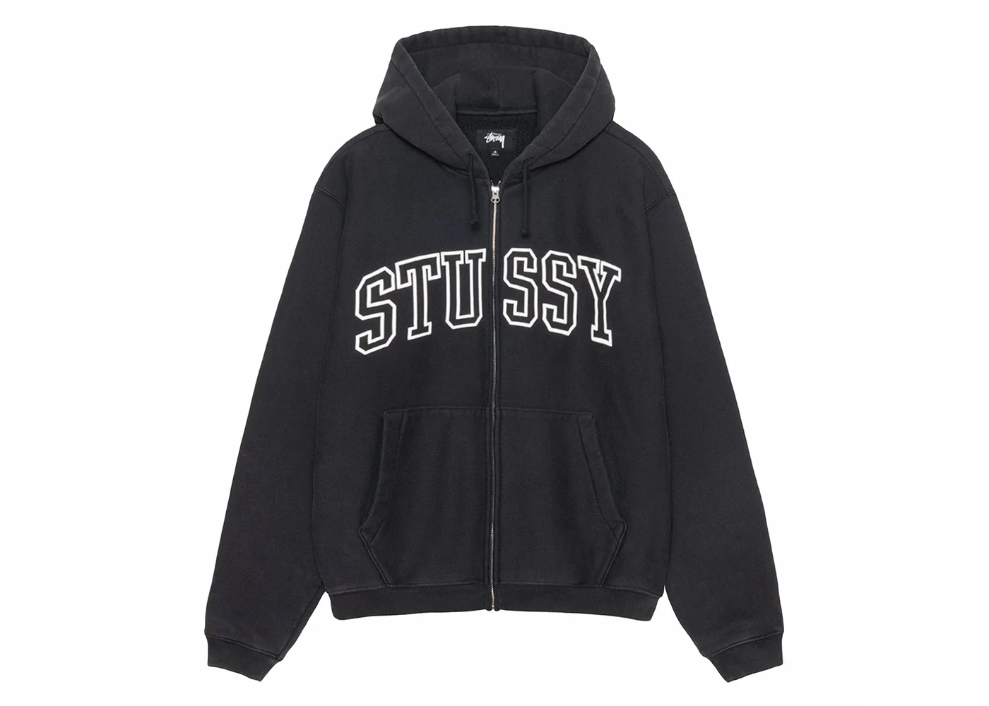 Stussy Outline Zip Hoodie Washed Black