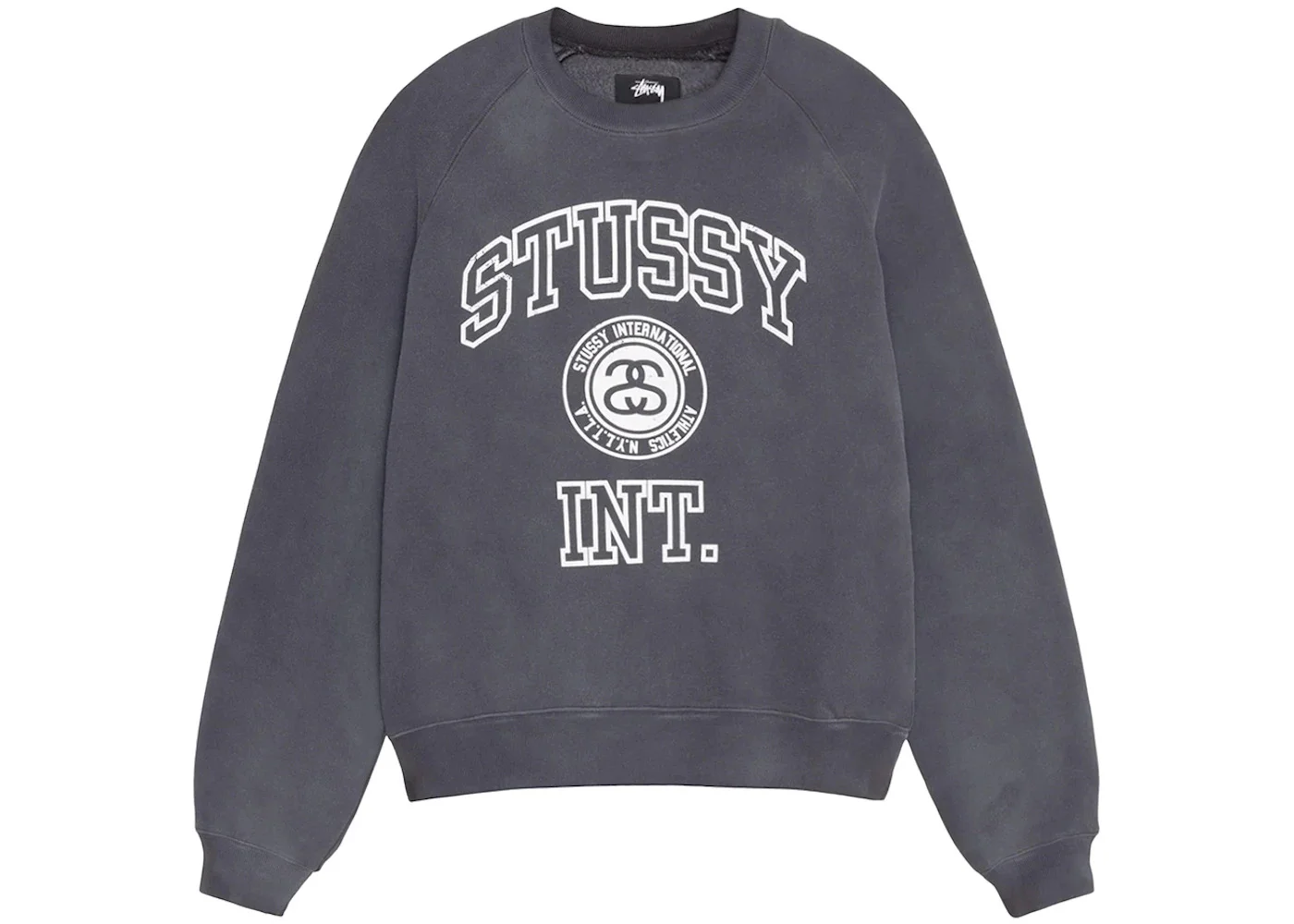 Stussy Overlock Varsity Raglan Crew Washed Black