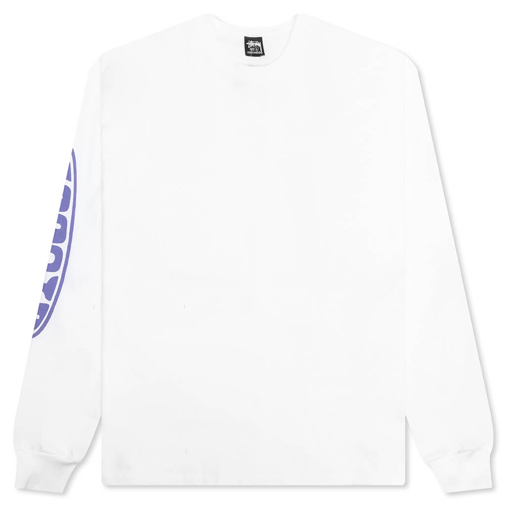 Stussy's Pill L/S Tee is made from cotton and features a ribbed collar for comfort. Designed to run large, this tee offers a relaxed fit that is perfect for casual wear. It showcases a screen-printed graphic down the sleeves, adding a stylish touch to your everyday look. Style No: - 100% Cotton - Crew neckline - Ribbed collar - Relaxed fit - Screen printed graphics - Style No: 1995087-WHIT