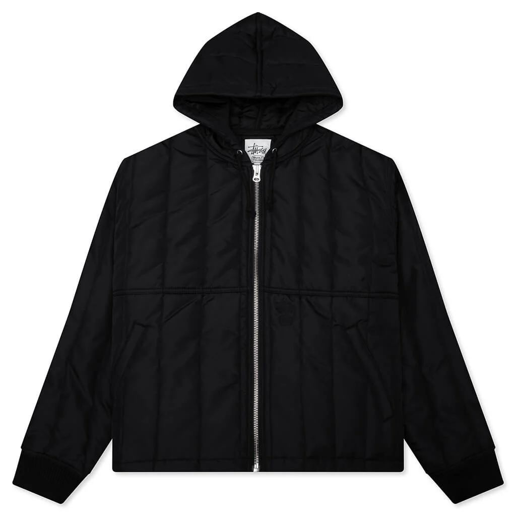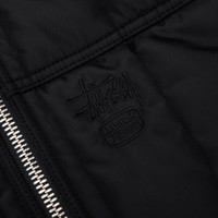Designed with function and durability in mind, Stussy presents the Work Jacket Quilted Nylon. Built with a full nylon shell and lining, the jacket is fully insulated with polyester fill and has a quilted construction for added texture. Featuring a full-zip closure and a drawstring hood and hem for versatility. Welt pockets and an interior pocket provide storage, while an embroidered Stussy logo adds a branded touch. - Main: 100% Nylon - Lining: 100% Nylon - Filling: 100% Polyester - Fully insulated - Drawstring hood - YKK zip closure - Embroidered Stussy logo - Welt pockets - Interior pocket - Ribbed cuffs - Drawstring hem - Style No: 115858-BLAC