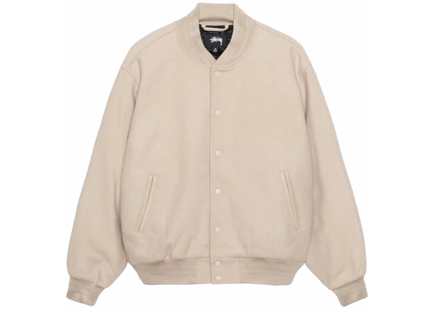 Stussy Sport Melton Varsity Jacket Oatmeal