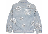 The Stussy x Denim Tears Type 2 Jacket Indigo presents hand-painted artwork on its front and back as Stussy and Denim Tears team up for a third time. The jacket by Stussy x Denim Tears is made of 100% cotton, washed material. Its spread collar design points to a pleat pattern that cuts across the yoke. Slightly below the chest are two pockets with flaps secured by silver buttons and two side seam pockets further down. The center front has half a dozen metallic buttons. Similarly, the cuff and adjustable bottom hem feature a button closure. On the front, sleeves, and back are white imprints. What makes the Stussy x Denim Tears Type 2 Jacket Indigo feature stand out? Our experts are fond of the hand-painted Stussy logos. They show mirrored but intertwining "S" letters inside a circle, all figures drawn in bubbling paint. On December 9th, 2022 when this jacket was first released, it had a retail price of $310. - Season FW22 - Color Indigo - Release Date 2022-12-09 - Retail Price 310 - Featured false