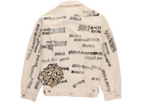 A result of the Stussy, Denim Tears, and Our Legacy collaboration, the Stussy x Denim Tears x Our Legacy TTL Denim Jacket White is made from 100% cotton. On the Stussy x Our Legacy TTL x Denim Tears jacket, a minuscule logo featuring the green, black, and red colors of Denim Tears appears on the upper right yoke on top of the Surfman Stussy motif. On the right side is an underlined TTL embroidery in black. Above these logos is a fold-down logo adorned by a brown Levi Strauss sewn-on sticker. This jacket features four pockets – two patched flap pockets below the chest and two side seam ones. The cuffs and front closure have a button closure, while the hem has waistband adjustment tabs. The standout feature of this denim jacket is the handwritten imprints that decorate its every part. Jamaica Queens, Stockholm, and Los Angeles are displayed in black to show the hometowns of Denim Tears, Our Legacy, and Stussy, respectively. The Stussy x Denim Tears x Our Legacy TTL Denim Jacket White was released on September 9th, 2022 for $360. - Season FW22 - Color White - Retail Price 360 - Featured false