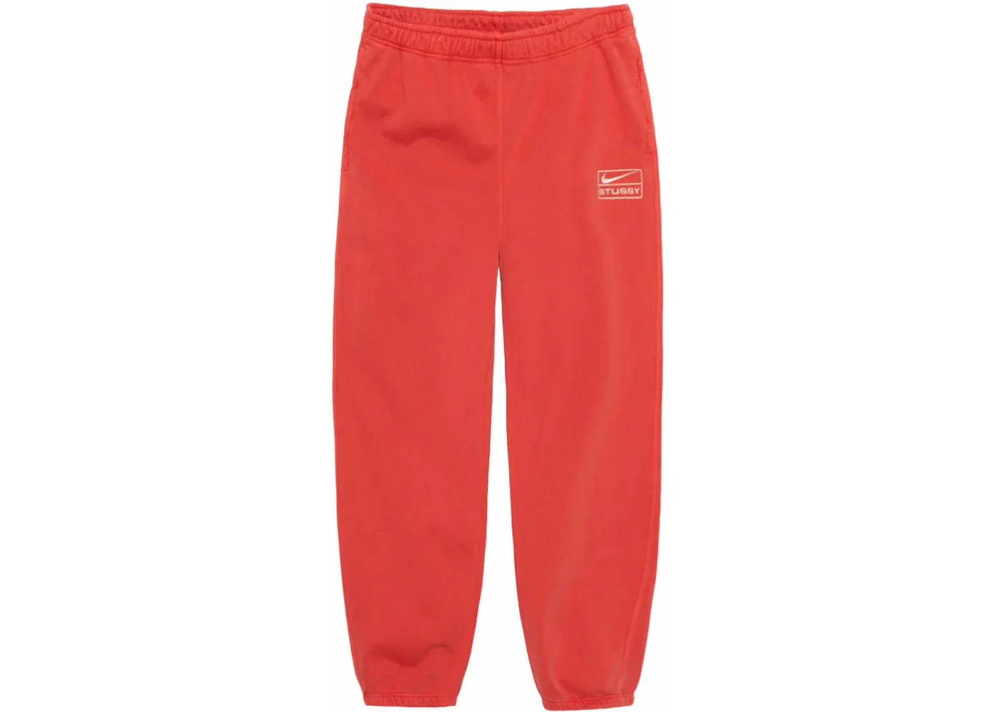 The Stussy x Nike Pigment Dyed Fleece Sweatpants in Habanero Red is a collaboration between Stussy, the renowned streetwear brand, and Nike, the global sportswear giant, to create a pair of sweatpants made from pigment-dyed fleece fabric. Stussy is a prominent streetwear brand known for its distinctive designs and cultural influence. Founded in the 1980s by Shawn Stussy, the brand has remained at the forefront of street fashion. The Stussy x Nike Pigment Dyed Fleece Sweatpants in Habanero Red are entirely made from fleece fabric, which is primarily composed of cotton and polyester. It is a unisex item that has a regular fit, as well as an elastic waistband with a drawstring. A feature of the Stussy x Nike Pigment Dyed Fleece Sweatpants in Habanero Red that our experts love is that it has two side pockets with zip enclosures that help to keep your items safe. This item first was released for sale on December 8, 2023, for a starting price of $105. - Season FW23 - Color Habanero Red - Release Date 2023-12-08 - Style FJ9157-642 - Retail Price 105 - Featured false - Uploaded By LL