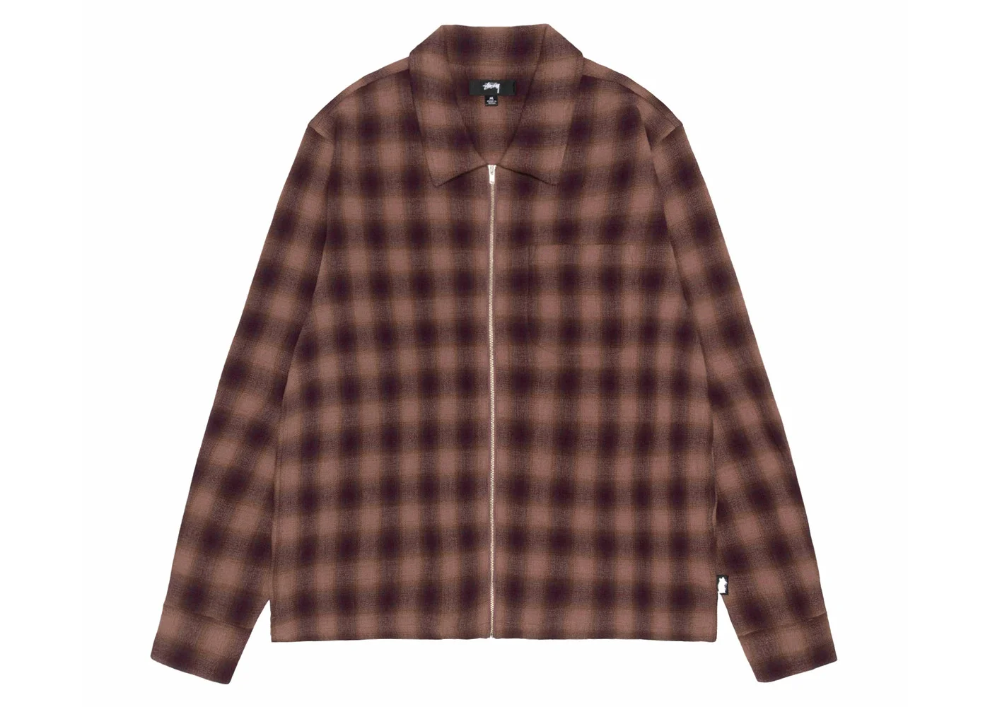 Stussy Plaid Twisted Yarn Zip Shirt Brown