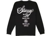 The Stussy World Tour collection featured the release of various pieces including the Stussy World Tour L/S T-Shirt Black. The World Tour L/S T-Shirt Black is made from a premium quality cotton material and features a black base color with white lettering. It has long sleeves and a crew neck design. The shirt features a straight hemline that falls just below the waistline and the cuffs are made in a ribbed design. The front of the t-shirt features the names of various cities including New York, Los Angeles, Tokyo, London, and Paris, which represents the brand's reach in renowned cities throughout the fashion world. The back features names of cities like the Bronx, Compton, Santa Ana, Brooklyn, and Venice. We think that the notable feature of the t-shirt is the Stussy branding. The front and back boast the brand's name in different fonts. The Stussy World Tour L/S T-Shirt Black was released on April 23rd, 2021, at a retail price of $50. - Season SS21 - Color Black - Retail Price 50 - Featured false