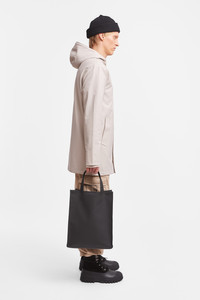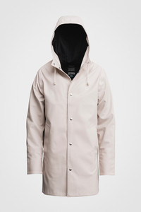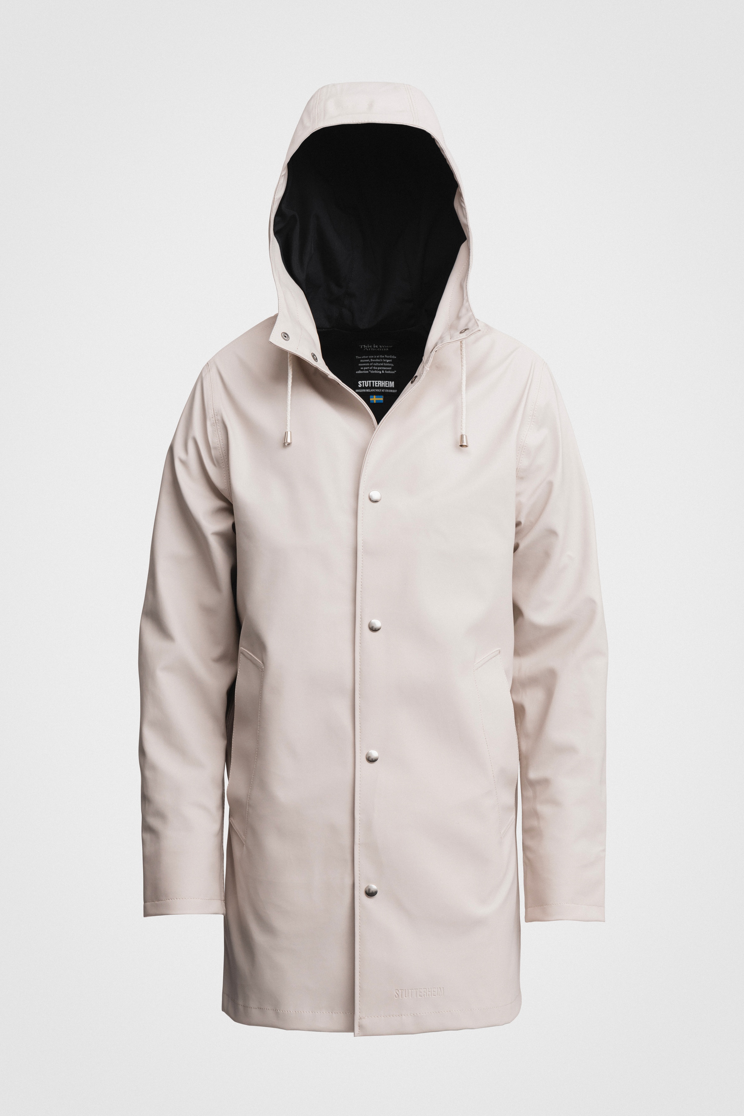 Arholma, named after a small island in the archipelago outside of Stockholm, is the original premium raincoat from STUTTERHEIM. It is our take on the classic fisherman’s coat, designed with troubled water and dark skies in mind. Handmade in Europe with tailored details, this is a legacy piece that will last a lifetime (even two or three). Constructed in our signature 530-gram, 100% rainproof rubberised cotton, with stitched and taped seams and a soft cotton lining. Also features a handy inside pocket, snap metal closures and a drawstring hood. The model is 187 cm / 6' 2" Wearing → SIZE M GARMENT DETAILS • Heavy-weight 530 gram rubberised cotton • Straight unisex fit • Black cotton lining • Snap metal closure • Drawstring hood • Open welt pocket • Inside pocket • Stitched and taped seams • Under-arm eyelets for ventilation • +20 000 mm water column pressure • Designed in Stockholm • Made by hand in Europe MATERIAL Coating: 100% PVC rubberized coating Membrane: 100% cotton Lining: 100% cotton Read more about our fabrics