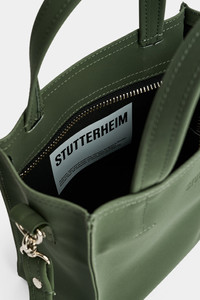 Biblio Bag Matte is a small handbag crafted in dense and sturdy waterproof fabric with a matte-textured finish, perfectly sized to fit essential items such as a phone, wallet etc. This elegant piece can be worn as a crossbody bag with the attachable shoulder strap or carried by hand by the top handles. A metal zipper at the top opening keeps belongings safe while the Cordura membrane ensures durability. GARMENT DETAILS - Heavyweight 1200-gram fabric - Matte-textured finish - Completely waterproof - Durable Cordura membrane - Metal zipper top opening - Top handles - Detachable crossbody strap - Contrast colour printed logo at centre-front - Debossed logo at centre-top - Printed logo label inside - +20 000 mm water column pressure - Height: 19 cm / 7.5″ - Width: 21 cm / 8.3″ - Depth: 9 cm / 3.5″ - Designed in Stockholm - Made in Europe MATERIAL Coating: 100% PVC rubberized coating Membrane: 100% Polyester Read more about our fabrics