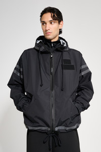 Forsa Full Zip is an short hooded rain jacket for men in breathable and water-resistant nylon fabric. Constructed with taped inside seams to ensure protection against rain, this relaxed-fit jacket is designed for functionality. The drawstring hood and adjustable bottom hem with chunky cotton strings add flexibility and comfort while the decorative reflective taped stripes make for a practical and stylish detail. GARMENT DETAILS - Breathable woven nylon fabric - Wind and water-resistant - Relaxed fit - Decorative reflective tape-detailing - Taped inside seams - Elastic sleeve cuffs - Side pockets patch lids - Drawstring hood with chunky cotton laces - Adjustable bottom hem with chunky drawstring cotton laces - Under-arm eyelets for ventilation - Velcro patch on lapel - Designed in Stockholm - Made in Europe MATERIAL Coating: 100% polyester Membrane: 100% polyurethane Read more about our fabrics