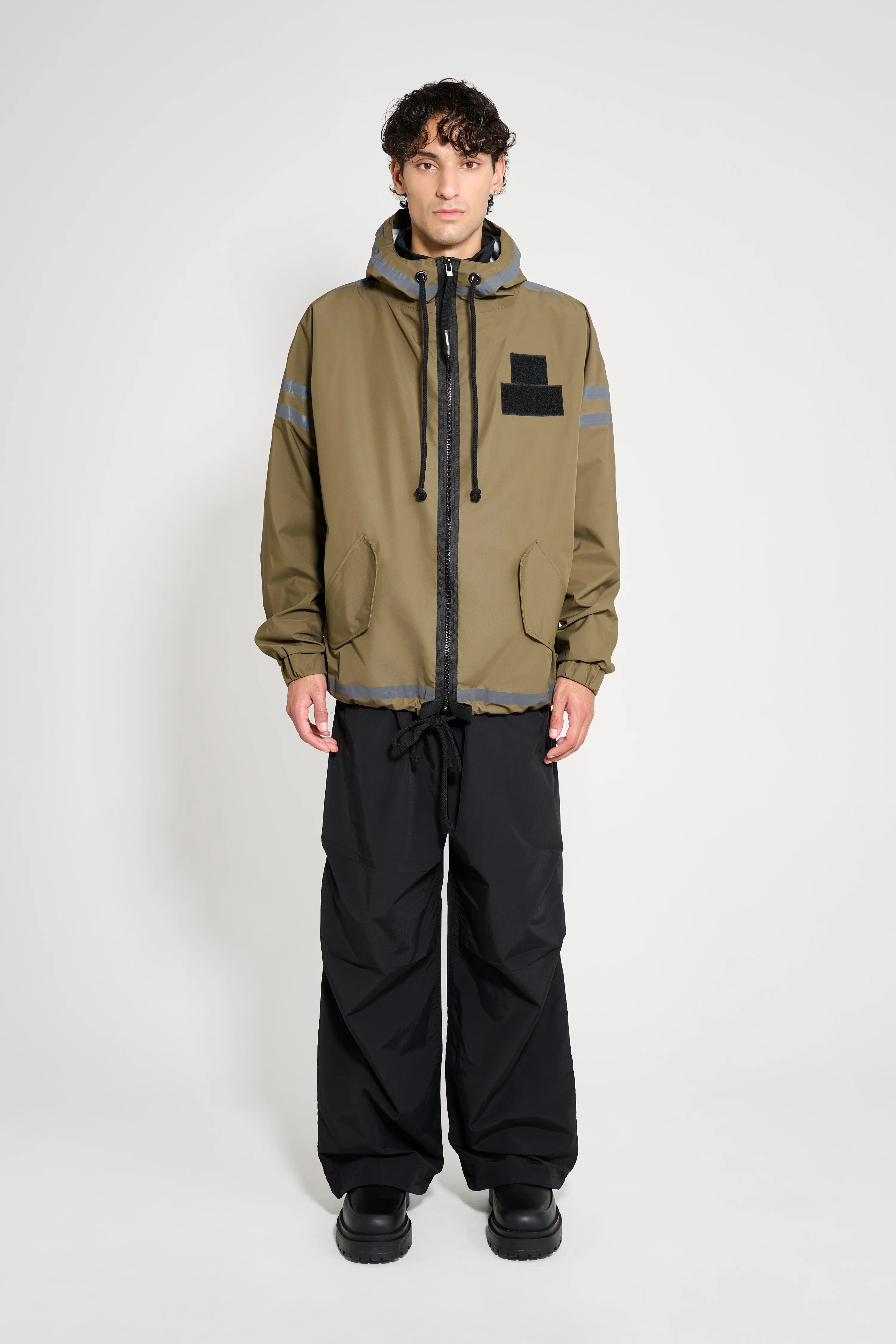 Forsa Full Zip is an short hooded rain jacket for men in breathable and water-resistant nylon fabric. Constructed with taped inside seams to ensure protection against rain, this relaxed-fit jacket is designed for functionality. The drawstring hood and adjustable bottom hem with chunky cotton strings add flexibility and comfort while the decorative reflective taped stripes make for a practical and stylish detail. GARMENT DETAILS - Breathable woven nylon fabric - Wind and water-resistant - Relaxed fit - Decorative reflective tape-detailing - Taped inside seams - Elastic sleeve cuffs - Side pockets patch lids - Drawstring hood with chunky cotton laces - Adjustable bottom hem with chunky drawstring cotton laces - Under-arm eyelets for ventilation - Velcro patch on lapel - Designed in Stockholm - Made in Europe MATERIAL Coating: 100% polyester Membrane: 100% polyurethane Read more about our fabrics